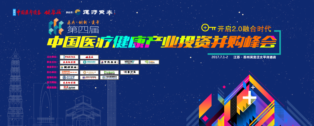 本着开放共享的互联网理念,为汇聚智慧、整合资源、推动合作、共赢发展,《中国医疗设备》杂志社携手《健康报》社、运河资本等多家机构将于2017年7月1-2日在苏州召开“第四届中国医疗健康产业投资并购峰会”。峰会将邀请近200位上市公司董监高、医疗企业代表、投资公司高管、专家学者、相关媒体、金融服务领域从业人员参与, 从不同角度论道当今中国健康产业投资与并购的走向。